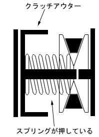 そしてそのプーリーには反対側にクラッチアウターが固定されていて、そのクラッチアウターと2枚目の稼動するプーリーの間にはスプリングが入っています。