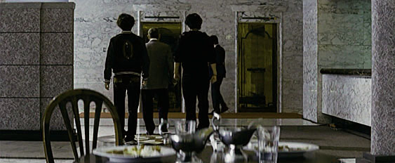 建物の配置からすると、上のシーンでエレベータの前にテーブルがある事になっているが、窓際のテーブルで食べてるので、実際にはエレベータから右に曲がった奥にテーブルはある。