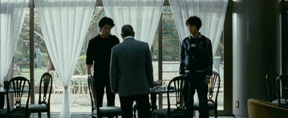続編のアウトレイジ・ビヨンドで古参幹部の富田が射殺されたあとで富田組の組員が射殺されるシーン。