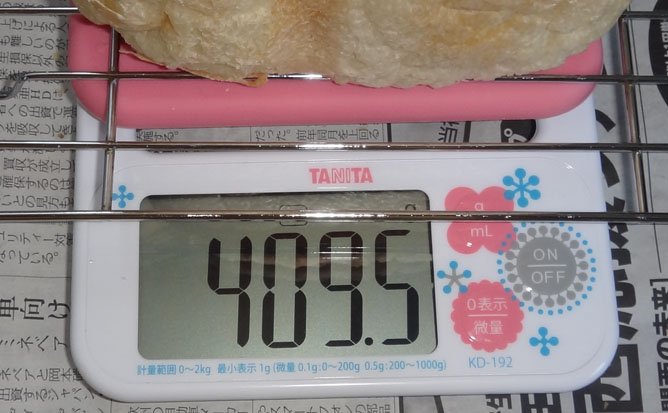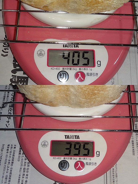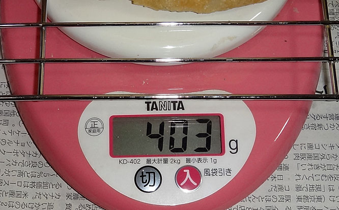 自然冷却30分後の重量416gで焼減率9.7%となった。