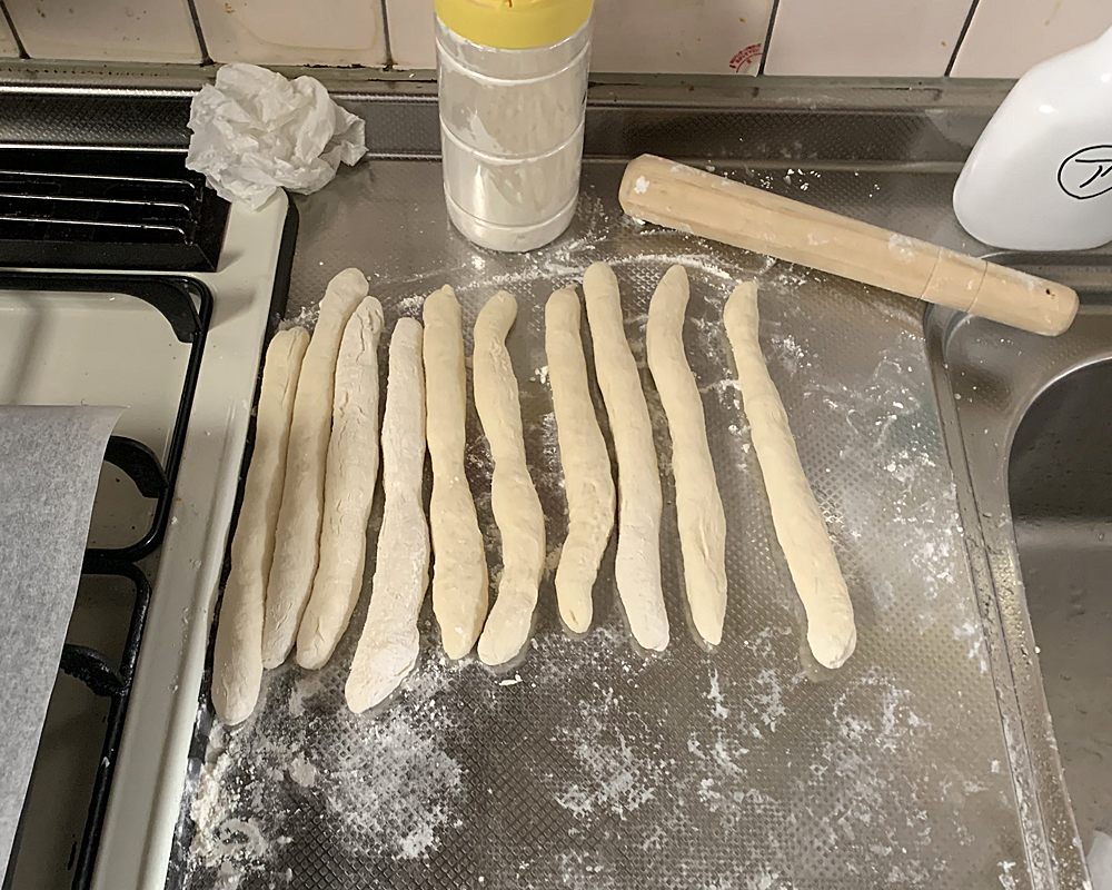 シリコンマットでも絶対に「くっ付かない」ではなくて、やはり薄力粉を塗さないとくっ付いてしまうことを学んだ。