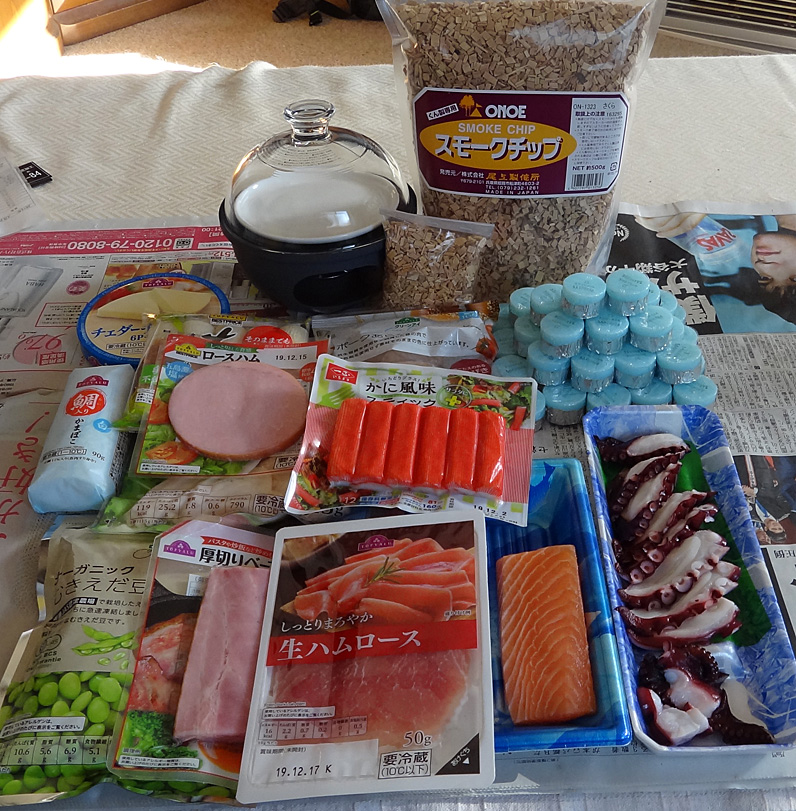 タコは良い感じで燻されたのだが、サーモンは失敗!