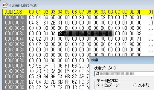 C2台目の「./iTunes Library.itl」をバイナリエディタで開き、