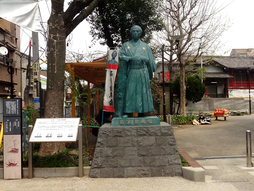 そもそも立会川地区が有名になったのは、黒船来航時の浜川砲台警備に駆り出された竜馬所縁(ゆかり)の地としてなので、高知県から寄贈されたプラスチック製の像はもともとあったのだそうだ。