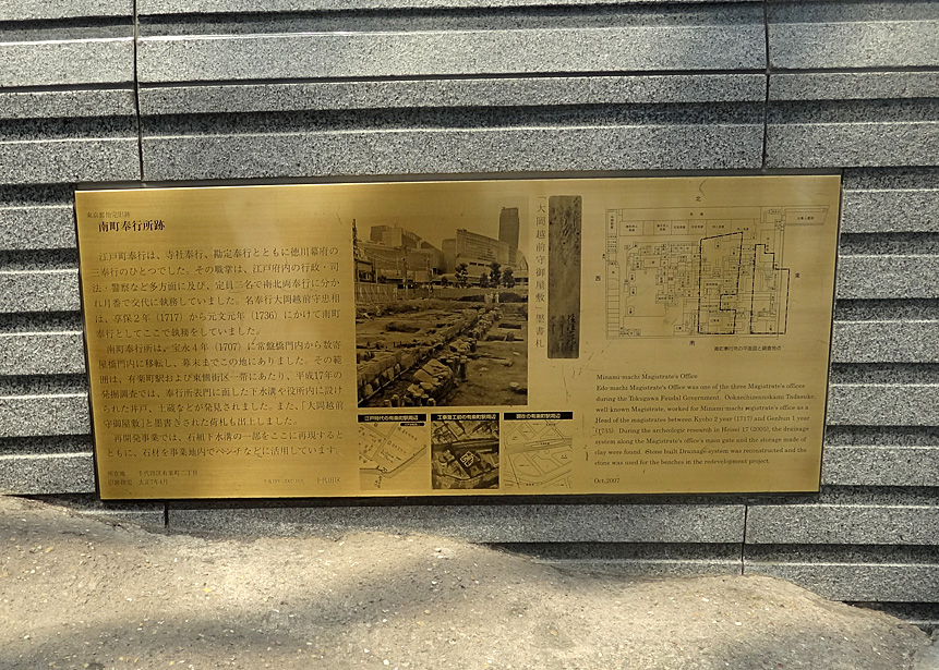 もと東京都庁の頃は跡碑があったらしいのだが、東京国際フォーラムになってからはこの「東京府庁舎」の碑だけのようである。
