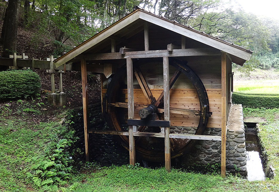 敷地面積約10万坪(570m四方)の中には水車で脱穀する作業小屋や水田が広がる。