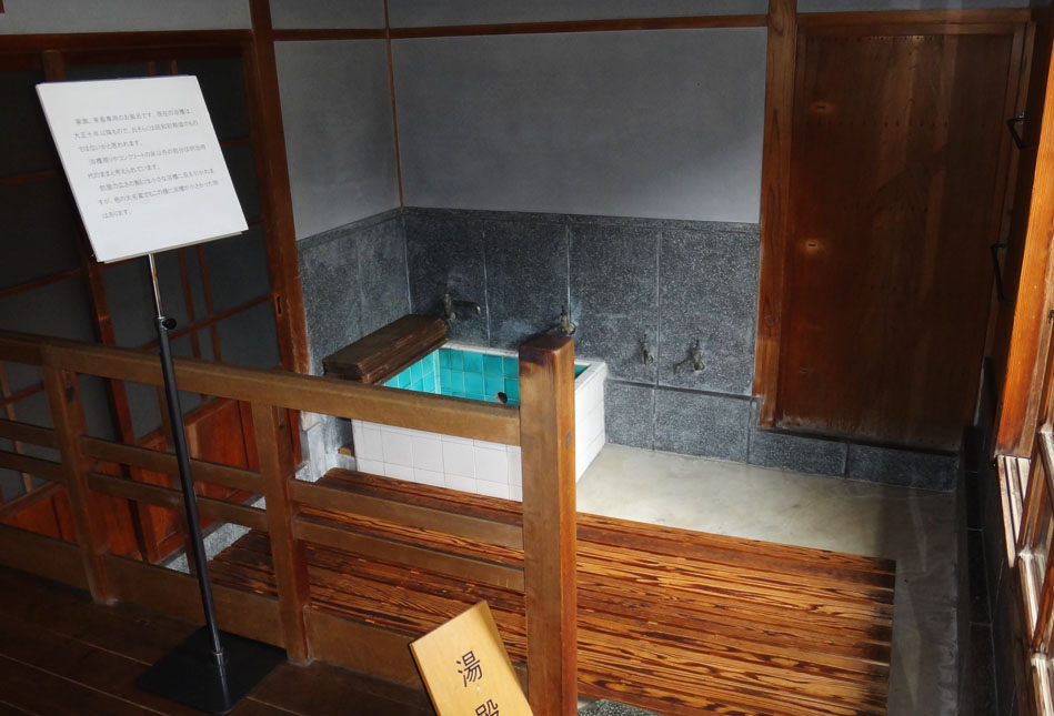 明治17年当時は木の湯船だったようで、風呂釜を直接熱する五右衛門風呂だったようだ。