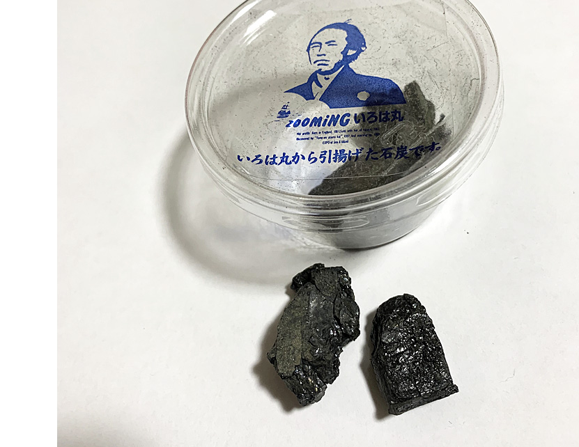 そしてその展示館にはいろは丸から引き上げられた品々の展示に混じって、実際に海底から引き上げた燃料である石炭が募金の対価として配布されている。