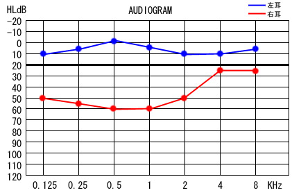 結果は、左耳は正常、右耳は中度〜重度の難聴と診断。