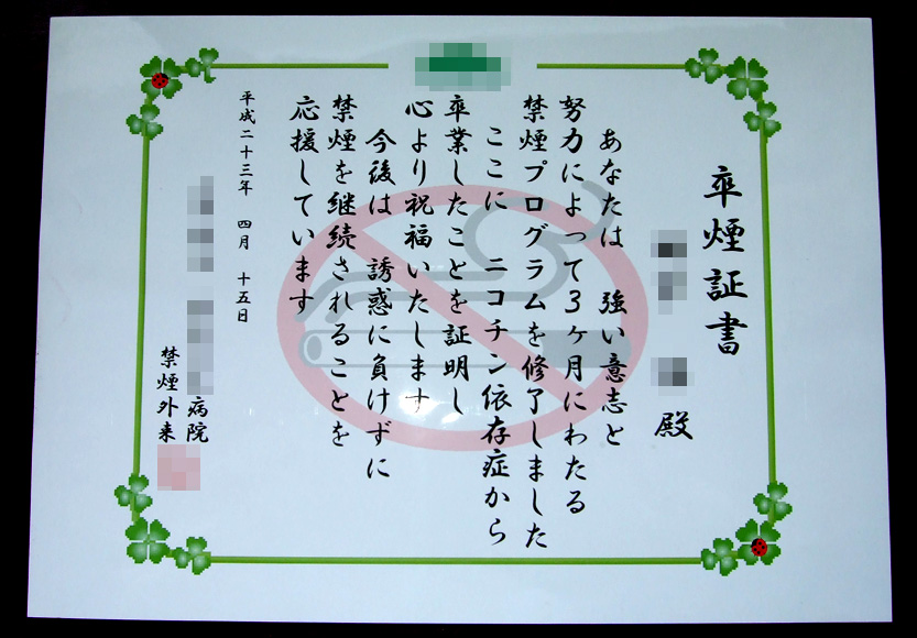 | 27 | 日 | 0 | 37日目 | ふと気がつくとニコレットも噛んでない。もういらない感じ。 | 14,800 |
