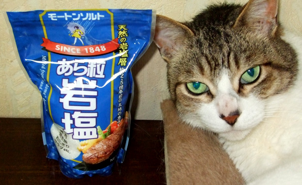 | 30 | 42 | 104.4 | 31.2 | × | 例のセット2 という訳で奥さんが買ってきてくれました、岩塩。 さすがに主婦だけあって300g300円と悲しい仕様でしたが、なかなかどうしてまろやかで美味しい仕様です。 (いやだから仕様≒塩って・・・さ・・) さすがにうちのぶ〜ねこは塩はキライなようです。 | × | 663 |  |