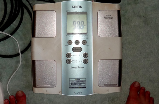 頭に来て夜中に起きて体重を測ってみる。112.2kg!!