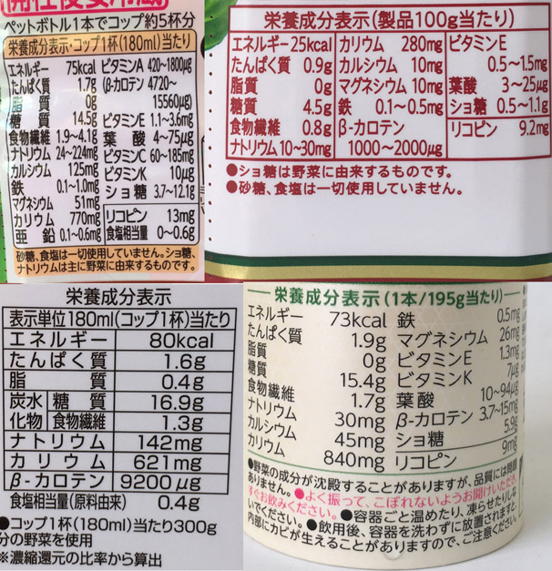 そこでスーパーで売ってる野菜ジュースを集めてみた。