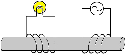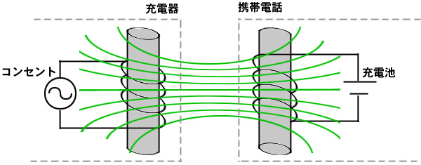 2次コイルはただのコイルなんだけど磁場を与えるとそこには電気が発生する。